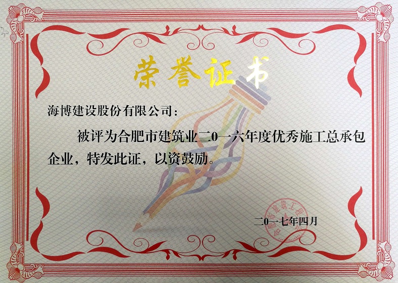 在一年一度的合肥市建筑業優秀企業評選中,我單位經過市建委、市建筑工程協會的層層評比,最終獲得合肥市建筑業2016年度“優秀施工總承包企業”及“優秀監理企業”雙項榮譽...