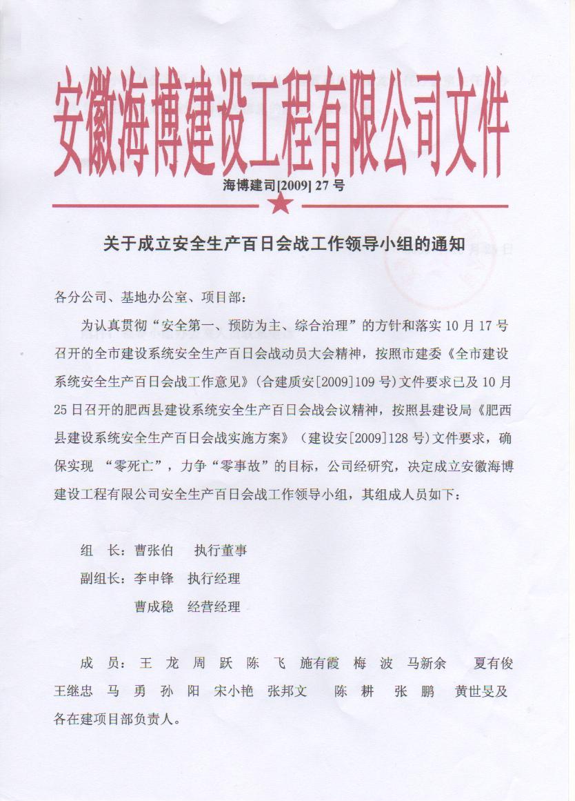 關(guān)于成立安全生產(chǎn)百日會(huì)戰(zhàn)工作領(lǐng)導(dǎo)小組的通知