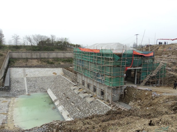 中派站工程是本次肥西縣濱湖泵站更新改造工程的第6標段,工程位于肥西縣上派鎮與嚴店鄉交界處,距合安高速公路約2km。為老站拆除新建項目,是以灌溉為主兼有排澇功能的泵站。為了保證灌區農田春耕、春種用水需要,我公司自開工以來就加大投入、積極準備、合理安排。在所有6個標段中,第一個澆筑底板、第 一個實現結構封頂、第一個開始設備安裝。為工程按期完工打下了良好的基礎。