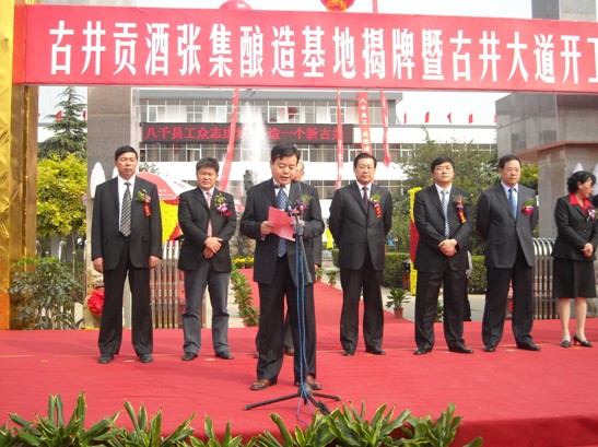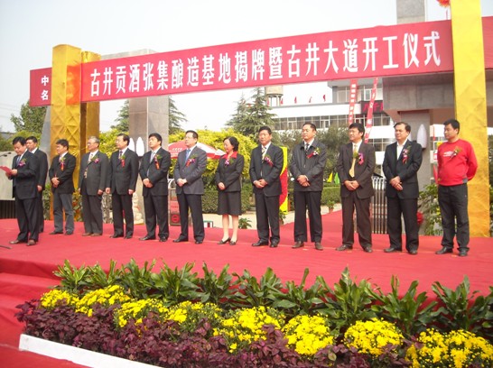 參加開工儀式的有亳州市市委書記、市人大常委會主任方春明,市委副書記、市長牛弩韜,市委常委、副市長袁方,譙城區委副書記、區長吳火權,古井集團黨委副書記、紀委書記王峰及我公司副總經理韋東等。市委領導和公司副總經理就張集鎮古井貢酒張集釀造基地揭牌暨古井大道開工發表重要講話,市委書記、市人大常委會主任方春明,市委副書記、市長牛弩韜為釀造基地揭牌 。