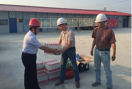 目前,已經(jīng)進入高溫施工期,為做好各施工現(xiàn)場安全生產(chǎn)、防暑、降溫工作,有效遏制夏季各類安全生產(chǎn)事故和高溫中暑事件發(fā)生,保障一線施工作業(yè)人員的安全、健康、清涼。公司以高度的責(zé)任感和緊迫感,由企業(yè)法人帶隊,深入施工現(xiàn)場,開展 “安全、健康、清涼”慰問活動,為一線施工作業(yè)人員送去企業(yè)的關(guān)懷和問候。同時要求各項目部,對一線施工人員的生命和健康抱以高度負責(zé)態(tài)度,把防暑降溫工作落實到每一個班組、每一個工人;“抓兩頭、歇中間”避免中午高溫期間進行室外施工作業(yè);確保施工人員宿舍、食堂、廁所、淋浴間等臨時設(shè)施滿足防暑降溫需求;為現(xiàn)場施工人員提供綠豆湯、茶水、常用防暑藥品,并配備相應(yīng)的急救器材;加強對飲用水、食品、食堂衛(wèi)生管理,嚴防食物中毒事件;加強防暑降溫工作檢查,注重防火,排除隱患,確保安全生產(chǎn)。