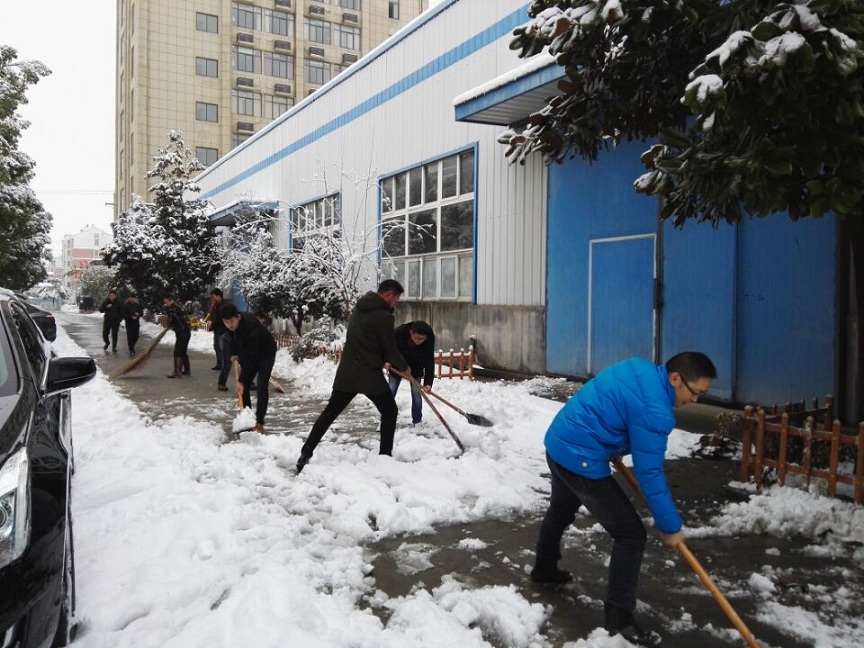 1月3日下午,合肥飄起了2018年的第一場雪,4日早晨積雪達5厘米,時至下午暴雪天氣愈演愈烈,傍晚時分積雪更是達到10厘米之厚。合肥各路段因積雪導致通行困難,事故不斷,集團公司周圍也被厚厚的積雪包圍,為保障聯海同仁及來訪人員的的安全出行,公司物業部及時組織人員開展清雪開路、鋪設地毯、溫馨提示、有序引導等一系列保障措施。