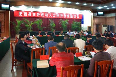 10月15日上午,我公司執(zhí)行董事曹張伯應(yīng)邀參加了肥西縣在外成功人士回鄉(xiāng)創(chuàng)業(yè)座談會。肥西籍外出創(chuàng)業(yè)人才、已回鄉(xiāng)創(chuàng)業(yè)人才代表匯聚一堂,共敘鄉(xiāng)情,共商肥西發(fā)展大計。縣領(lǐng)導(dǎo)陳曉波、李海鷹、孫明權(quán)、夏倫平、羅平、黃衛(wèi)東、楊光磊、汪厚云,各鄉(xiāng)鎮(zhèn)鄉(xiāng)鎮(zhèn)長和縣直相關(guān)單位負(fù)責(zé)同志等出席會議。